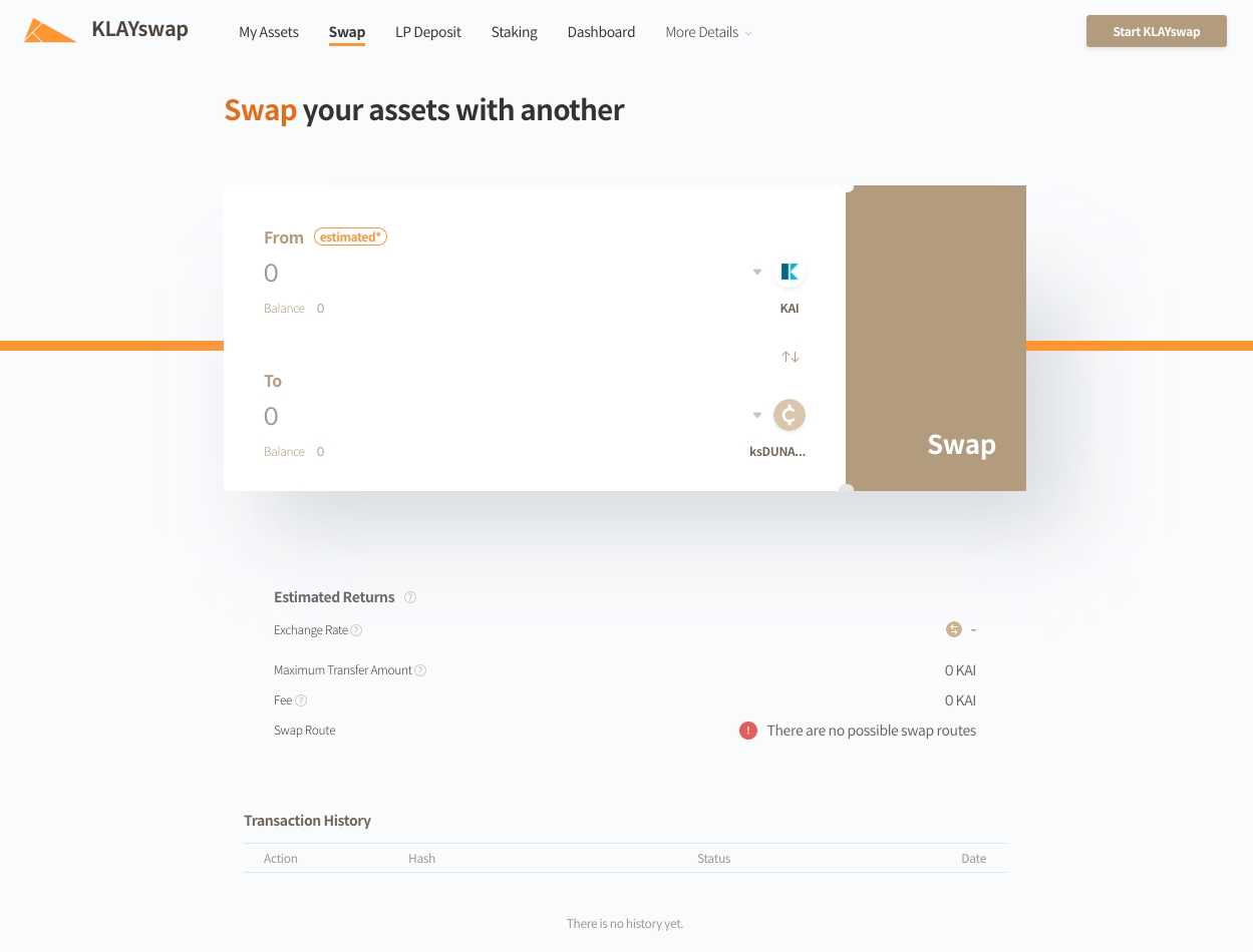 2. 각 합성자산을 매수/매도할 수 있도록 아래 이미처럼 Klayswap으로 연결됩니다.