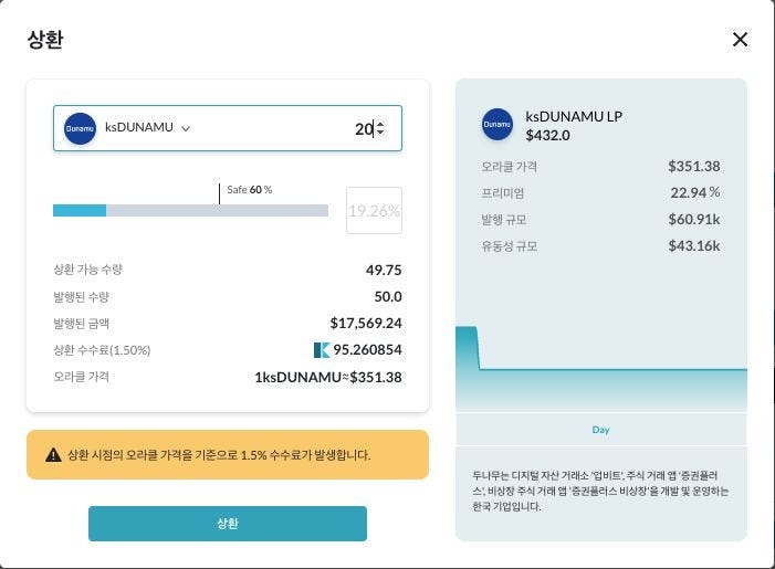 ※ 담보 비율, 합성자산 발행, 전송, 상환 수수료는 서비스 상황에 따라 변경될 수 있습니다.
